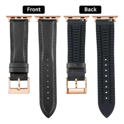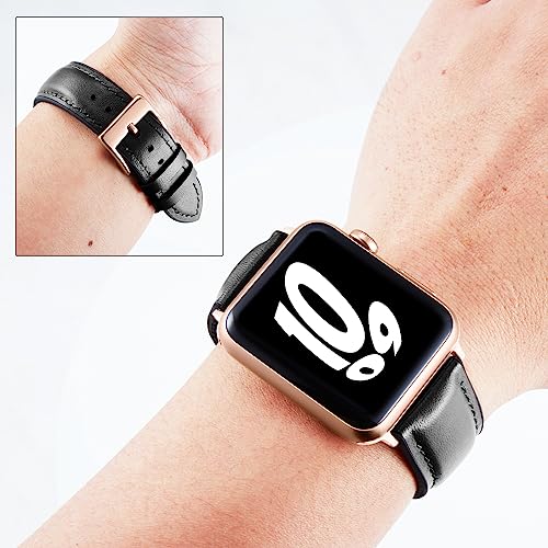 コンパチブルApple Watchバンド レザー 通気性 内側にシリカゲル 38MM 40MM 41MM 42MM エレガント互换アップルウォッチの 革ベルトスポーツ男女共用 対応iWatch 10/9/8/7/6/5/4/3/2/1/Ultra/SE (ブラック/ローズゴールドバックル)