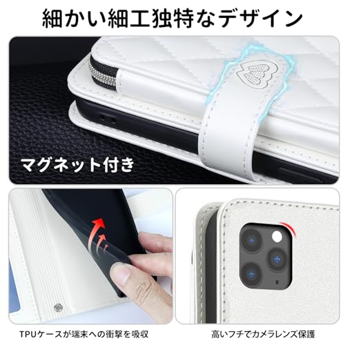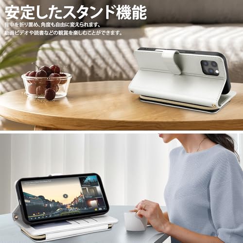 【Succtopy】適用のいphone11promax ケース 手帳型 ショルダー 肩掛け 斜め掛け 用のiphone 11 pro max ケース 上質PUレザー おしゃれ 刺繍 大容量収納 カードポケット付き カード収納 全面保護 耐衝撃 スタンド機能 擦り傷防止 ストラップと首掛け付き 可愛い 磁気バックル付き(ホワイト)