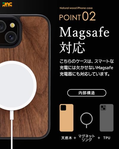 【JAC】 iphone15ケース ウッド 北欧風天然木 お洒落 アイフォン15ケース 高級 耐衝撃 ワイヤレス充電対応 日本企画品 (iphone15 ウォルナット)