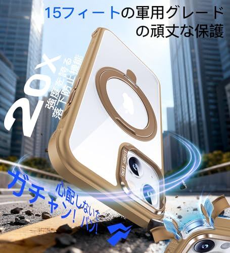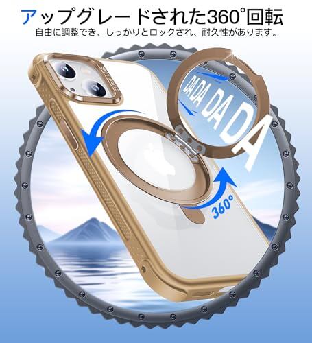DASFOND iPhone 14/13 用 クリアケース 360°回転マグネットスタンド [MagSafe対応] 黄ばまない透明ハードPCバック 滑り止めバンパー 耐衝撃保護電話カバー iPhone 14/13 ゴールド