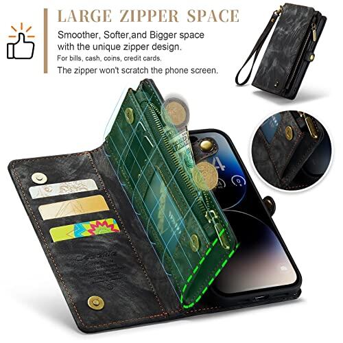 iPhone 16 用 ケース 財布型 カード収納 小銭入れ ワイヤレス充電 アイフォン 16 カバー 手帳型 ストラップ 付き カードポケット付き 収納ポケット 2 in 1マグネット吸着 横置き スト耐衝撃 ラップホール付き