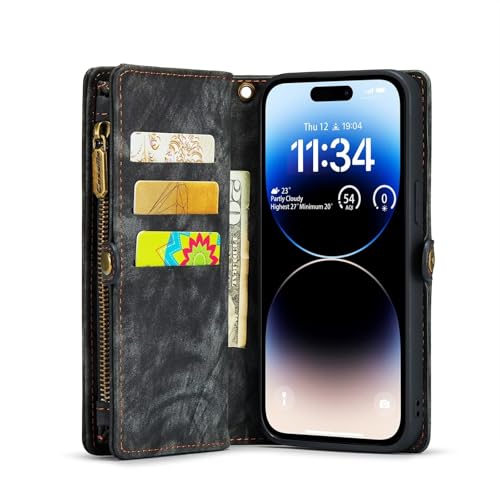 Fengyue iPhone 16 Plus 向き用 ケース 財布型 カード収納 小銭入れ ワイヤレス充電 アイフォン 16 プラス カバー 手帳型 ストラップ 付き カードポケット付き 収納ポケット 2 in 1マグネット吸着 横置き スト耐衝撃 ラップホール付き