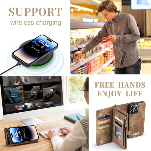 iPhone 16 用 ケース 財布型 カード収納 小銭入れ ワイヤレス充電 アイフォン 16 カバー 手帳型 ストラップ 付き カードポケット付き 収納ポケット 2 in 1マグネット吸着 横置き スト耐衝撃 ラップホール付き