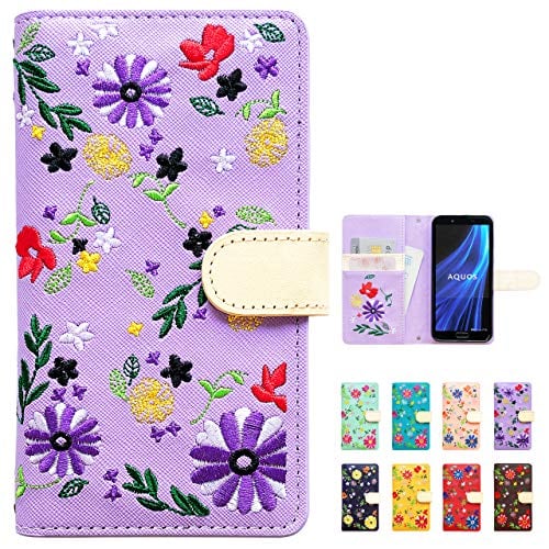 AQUOS SENSE 8 SH-54D 手帳型 ケース カバー SH-54Dケース SH-54Dカバー SH54D SHG11ケース SHG11カバー アクオス SENSE 8手帳ケース 手帳型ケース スマホケース ヌメ花刺繍 パープル