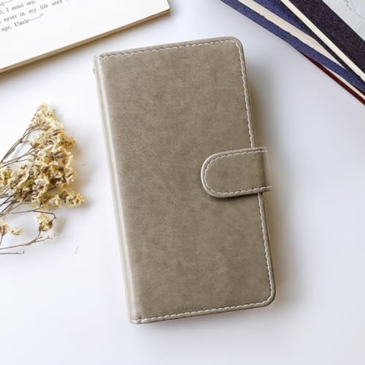 部長手帳型ケース。できるだけ本革の風合いを出す為、柔らかいpuレザーを使用し、手帳表面に特殊な加工を施してありますので細かい傷などがある場合がございます。お使いいただくほどに風合いが増し、数々の試練を乗り越えてきた部長の風格漂う手帳となってまいります。