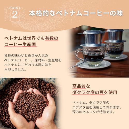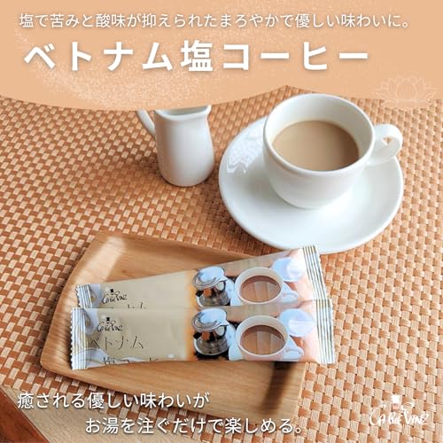 【こんな方におすすめ!】 コーヒーの苦みが苦手な方。まろやかでコクのあるコーヒーを楽しみたい方 。ベトナムの本格的なコーヒーを手軽に味わいたい方。新しいコーヒーの楽しみ方を試したい方。 日本ではまだ珍しい**「塩コーヒー」**を、この機会にぜひお試しください。