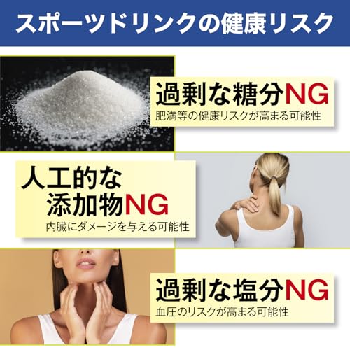 【人工甘味料不使用】このスポーツドリンク粉末は、人工甘味料「アスパルテーム」「アセルスファムK」を使用しておりません。※マッシュルーム糖(別名トレハロース)とステビアの葉から抽出した天然糖質を使用して飲みやすくしています。