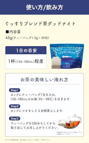眠りに大切なのは「時間」ではなく「質」。ところが年齢を重ねると『質の良い眠り』はどんどん遠ざかり、ぐっすり休めない日が増えてきてしまいます。そこでサントリーが開発したのが、体に優しい西洋植物×和漢植物を絶妙に配合した、『ぐっすりブレンド茶 グッドナイト』。温かいお茶がほどよく体を温めて自然な眠りを後押し、さらに心落ち着く植物の香りで朝まで続くぐっすりをサポートします。お休み30分前に「1杯のお茶を飲む」新習慣を、あなたも始めてみませんか?