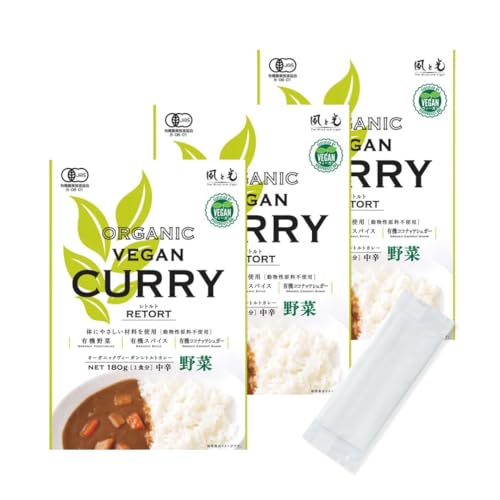 オーガニック ヴィーガンレトルトカレー 野菜 180g×3袋 有機JAS認証 ビーガン VEGAN 動物性原料不使用 ベジタリアン 四季良品おしぼりセット (3袋, 野菜)