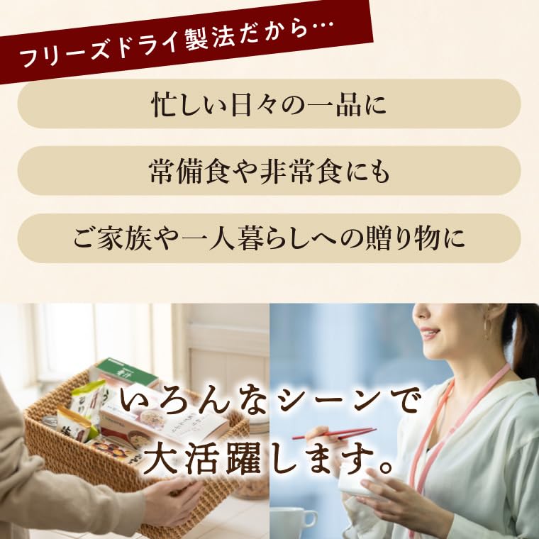 【お召し上がり方】袋の中身を器に入れ、熱湯(90ml)を注いでよくかき混ぜ、お茶碗一杯分のごはん(約150g)にかけてお召し上がりください。※お湯の量はお好みで調整してください。商品にごはんは含まれません。