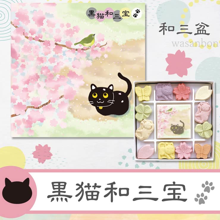 黒猫和三宝(猫のクロのお散歩 春)和三盆 和三盆糖 お干菓子 干菓子 和菓子 ねこ 猫 黒猫 クロネコ 招き猫 プチギフト ギフト (2個)