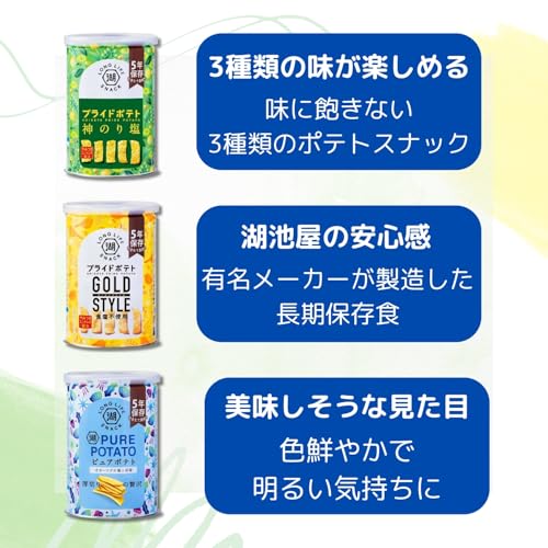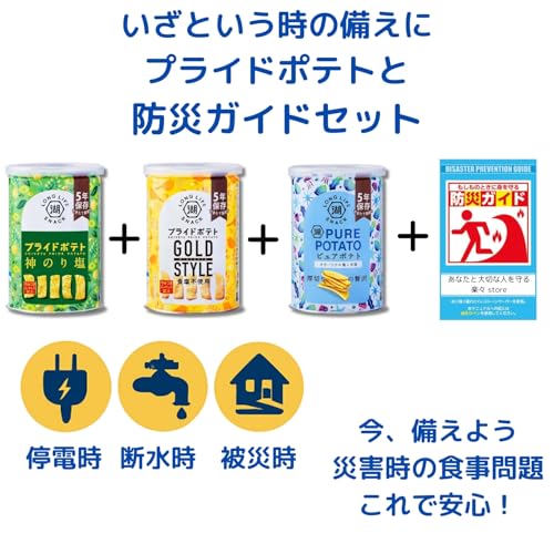 【3缶セット】5年保存 ポテトチップス プライドポテト 神のり塩・GOLD STYLE・ピュアポテト 防災ガイド付き 非常食 保存食 備蓄 お菓子 ローリングストック 学校 オフィス 地震