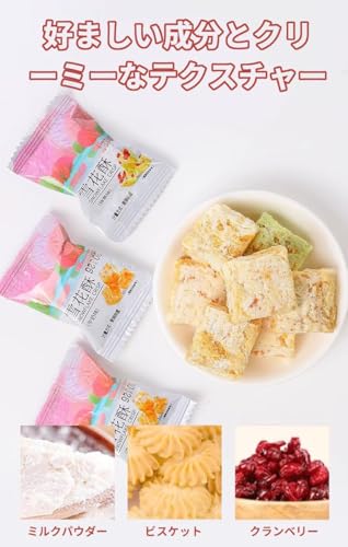ヌガー お菓子 雪花酥 外はサクサク、中はソフト 溢れる香り 絶妙な形 おいしい ナッツヌガー 牛軋糖 奶糖软糖 キャンディ 零食小吃 甜点糕点 中華お菓子 牛圧乳芙ビスケットケーキ(ミルキーフレーバー+抹茶フレーバー+クランベリーフレーバー,约500g*1箱)