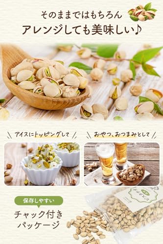 ✅【素焼きピスタチオならアレンジしても美味しい】スイーツ作りやトッピングなどアレンジ可能。保存に便利なチャック付きパッケージになります。
