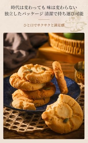 【純正素材】本物の原材料で丁寧に作られており、ピーナッツ1.8%、カボチャの種1.4%、ゴマ1.4%、egg10%、バター10%などの原材料が明確に表示されています。これらの本物の原材料により、おいしさがはっきりと見え、一口ごとに本物の食材の味を感じることができ、健康と安心がいっぱいです。