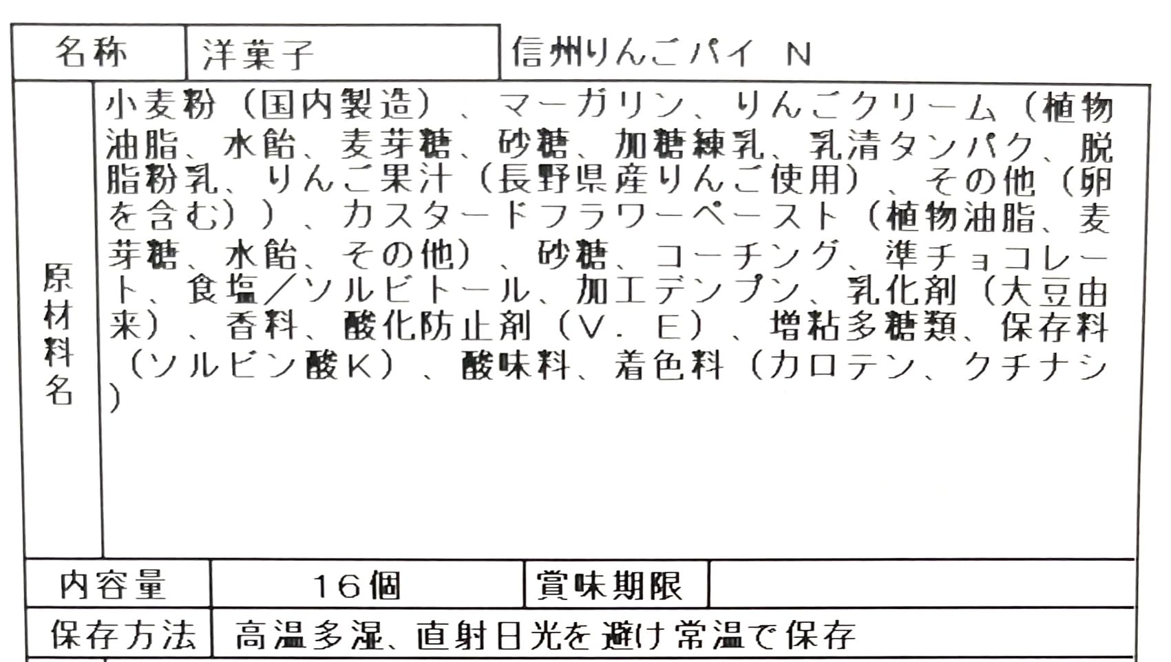 信州りんごパイ りんご&カスタードクリーム入り 16個入り
