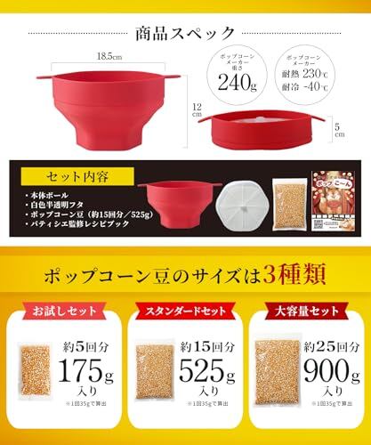 ポップコーン 豆 電子レンジ用 原料豆 種 とうもろこし コーン お菓子作り Medichef (豆175g, ポップコーンメーカーと豆のセット)