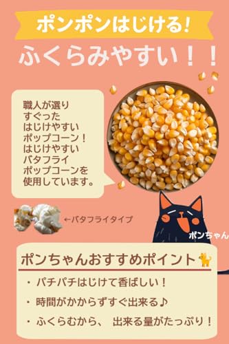 はじけやすい!厳選バタフライタイプ バタフライタイプのコーンは、ふんわりと大きくはじけて軽い食感が魅力。ポンポンとよくはじけて、失敗が少なく、初めての方にもぴったり!フライパンでもレンジでも、おいしく簡単に仕上がります。