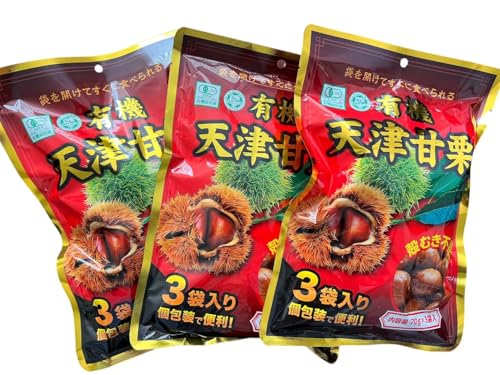 【まとめ買い】有機 天津甘栗 210g× 3袋 個包装 便利 殻むき不要 有機むき栗 一粒一粒皮を剥いています おやつ 間食 おつまみ 大容量 (70g入り×9P)