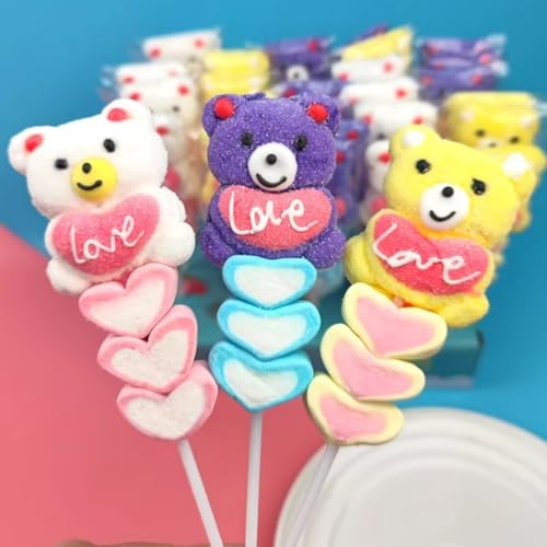 串焼きマシュマロ お菓子 ギフト 30本入り 個包装 大容量 業務用 バレンタイン 感謝 プチギフト カフェ装飾 (くまさん1個&ハート3個)