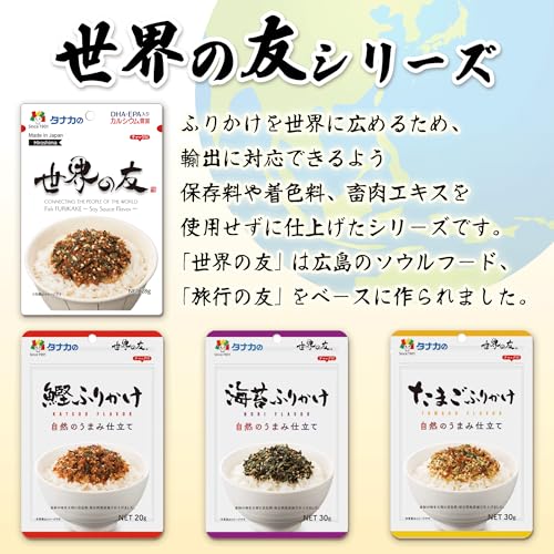 手軽に美味しく栄養が摂れる日本の食文化≪ふりかけ≫ 。大正初期の発売から100年を越える伝統のふりかけ 「旅行の友」を世界中に広める為に作られた 『世界の友』が新発売! 海外の方へのお土産や贈り物にも最適です。