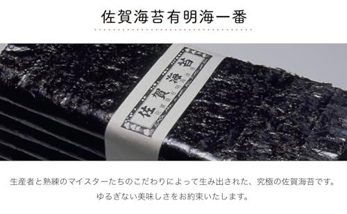 日本最大の干満差を誇る有明海で養殖される「佐賀のり」は、干潮時に日光を浴びるため、旨味が凝縮された口溶けの良い海苔に育ちます。また、パリッとした歯切れと旨みが特徴。