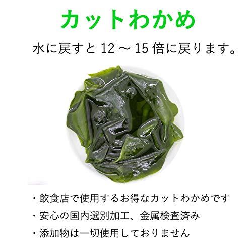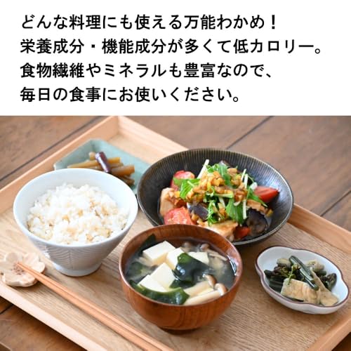 ・使用方法:味噌汁、スープ、ラーメン等にそのまま入れるだけでご使用頂けます。水に戻して海藻サラダなどで多く利用されておりますが、近年では栄養偏りがちなインスタントラーメンなどに乾燥ワカメを加えて美味しく栄養摂取も人気の使用方法です。