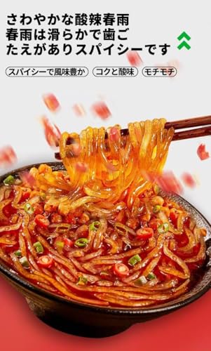【厳選素材・美味しさの源】この力強い酸辣湯麺は、新鮮なサツマイモ粉を厳選し、いくつもの工程を経て丁寧に作られ、麺は繊細で硬く、透明感があり、長時間浸しても腐りません、ノンフライ、0脂肪0糊、安全で美味しい。新鮮でスパイシーなソース、本格的なぬか酢、美しい調味料パケットで、各材料は、おいしさのための強固な基盤を築き、慎重に選択されています。