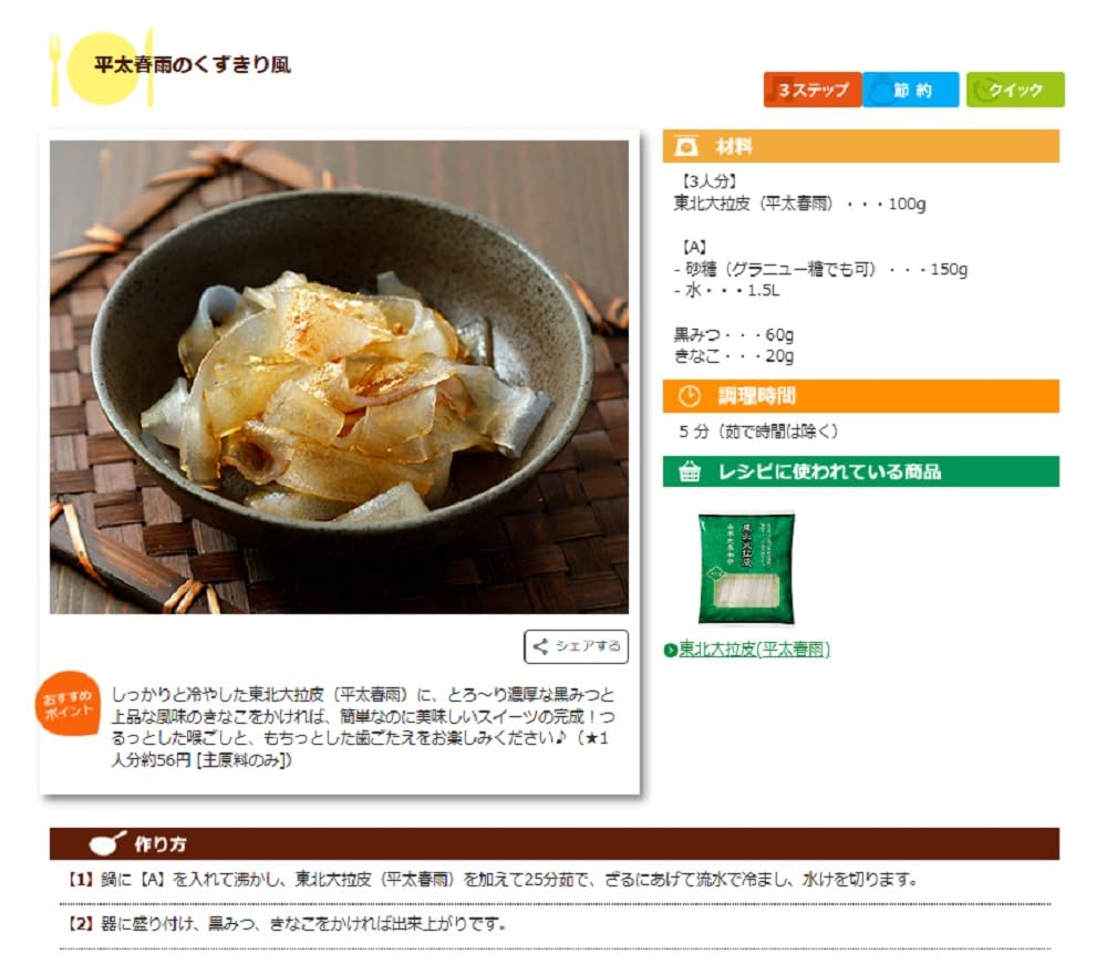 栄養成分: 100g当たり ●エネルギー:354kcal ●たんぱく質:0.3g ●脂質:0.2g ●炭水化物:87.9g ●食塩相当量:0.02g