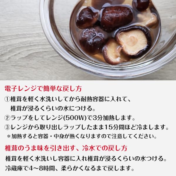 名称:乾しいたけ、原材料名:しいたけ(菌床栽培)