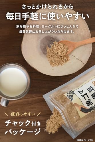 ✅【まろやかな甘み×香ばしい風味】黒大豆を熱風焙煎し、黒すりごまをブレンド。きな粉本来のコクと甘みをしっかりと感じられる味わいに仕上げました。