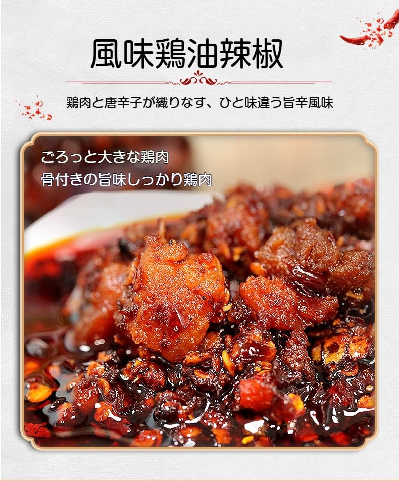鶏油のコクと唐辛子の香ばしさが生む、奥深い旨辛 香ばしく仕上げた唐辛子に、コクのある鶏油を加えることで、 ただ辛いだけではない、旨みと香りのバランスが取れた味わいを実現。