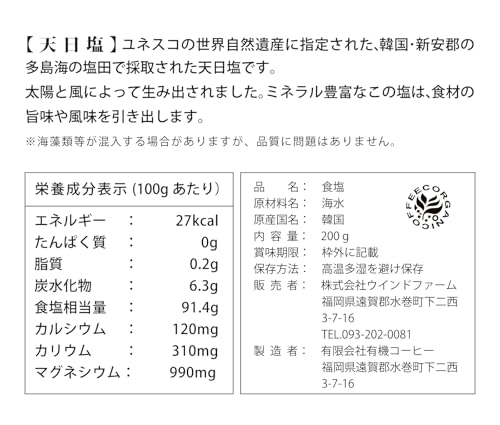 ウインドファーム 天日塩 (小粒) 200g 塩 天然塩 おにぎりにも ミネラルたっぷり 韓国 海水塩