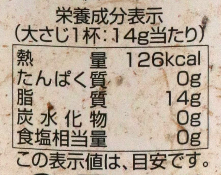 原材料:食用なたね油[遺伝子組換えでない(北海道、青森)] ※品種 キザキノナタネ