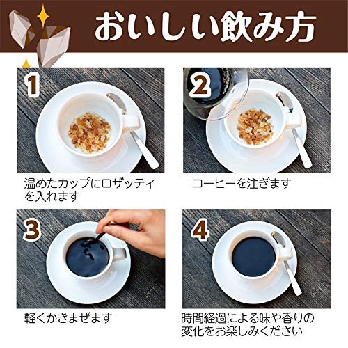 コーヒーの香りが活きるコーヒーシュガー「ロザッティ」シリーズ。日本初のコーヒー専用砂糖です。