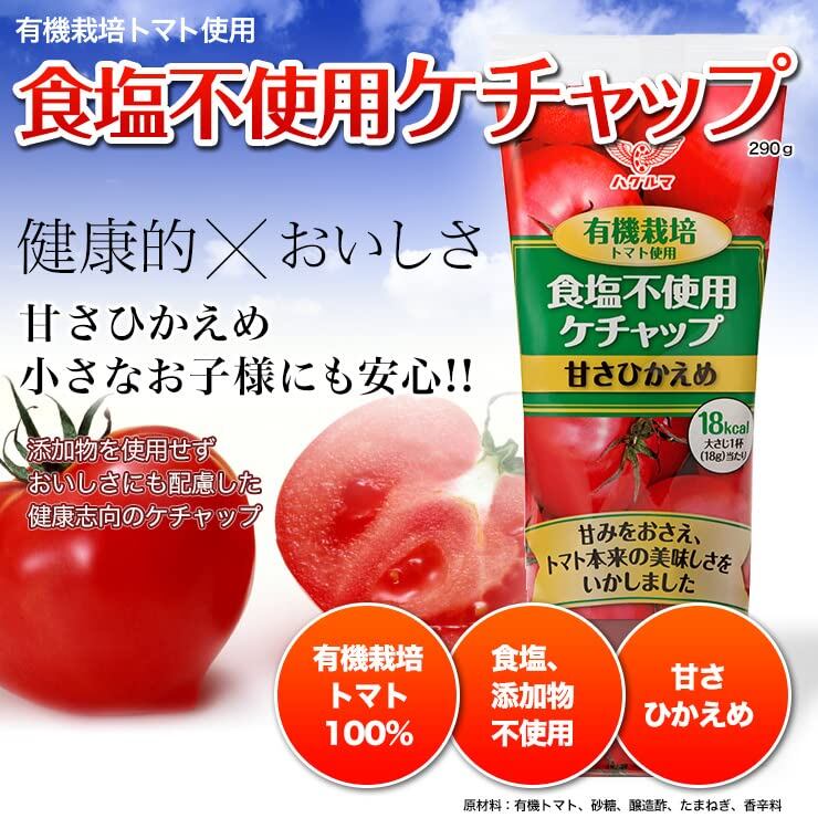 ハグルマ ケチャップ ~ 有機栽培トマト使用・食塩不使用・甘さ控えめ糖類15%カット ~【 食塩不使用ケチャップ 290g × 1本 】