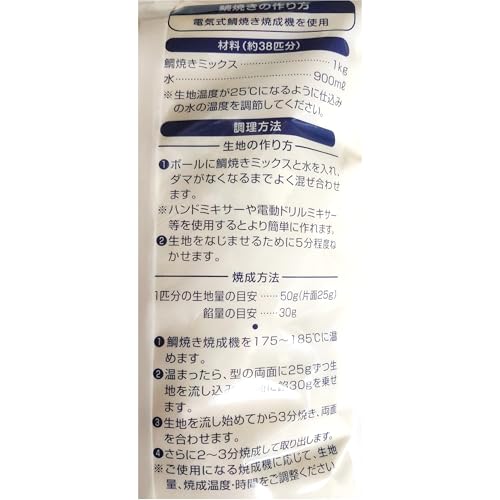 たい焼き作りが初めての方でも、裏面に調理方法(生地の準備や鯛焼き焼成器の温度設定など)が記載されているので安心です。