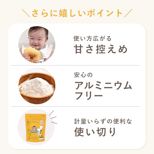食塩、8大アレルゲン不使用。甘さ控えめでお子さま(9ヶ月頃)から大人まで安心して楽しめる