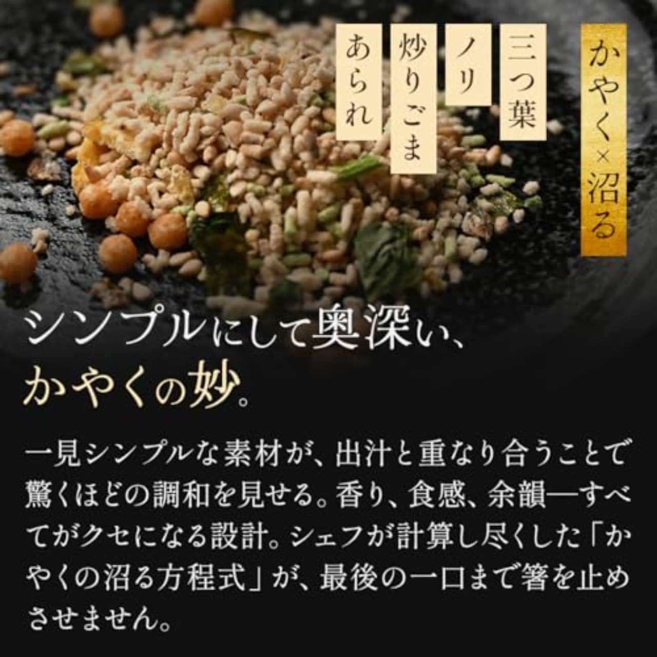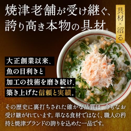 焼津老舗のだしを使用したこだわりのお茶漬け。素材の旨みを引き立てる上品な味わいで、毎日食べても飽きないお茶漬けの素に仕上げました。ご家庭用はもちろん、大切な方へのお茶漬けギフトとしても選ばれる本格お茶漬けです。